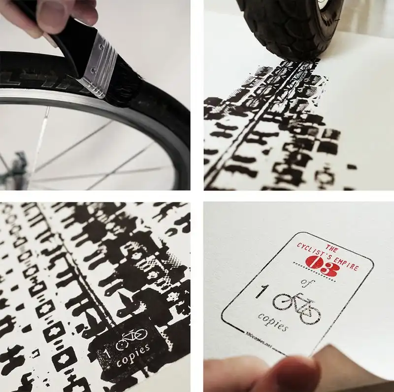 Художник Томас Янг в качестве инструмента для создания картин использует не кисти, а велосипед. Он смачивает колоса в краске и начинает гонять покрышками по холсту, создавая картины мировых архитектурных достопримечательностей.