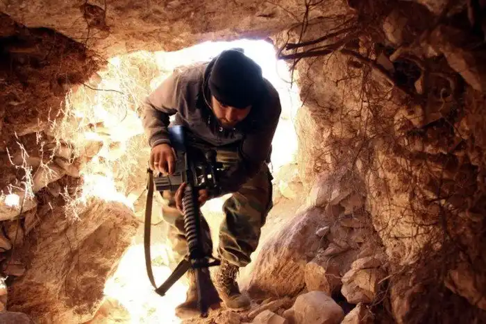 В Сирии вооружение антиправительственных военных формирований значительно уступает оснащению регулярной армии страны, и чтобы выровнять этот дисбаланс, боевики прибегают к различным ухищрениям. Например, укрытия, госпитали, помещения для складов, штабы и убежища для членов семей антиправительственных сил находятся в пещерах. В этих пещерах возникает целая сеть естественных и искусственных тоннелей, служащих надежной защитой для людей, скрывающихся в них.