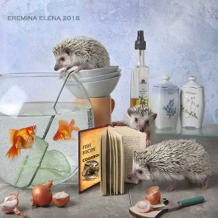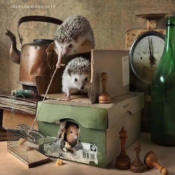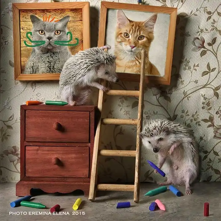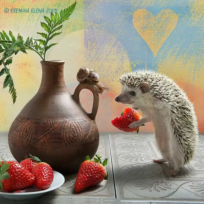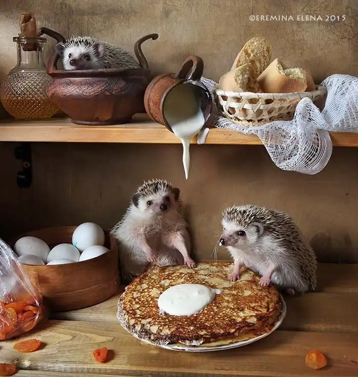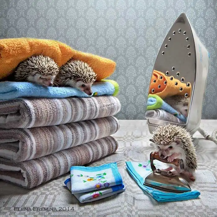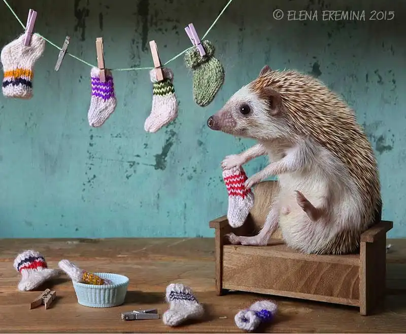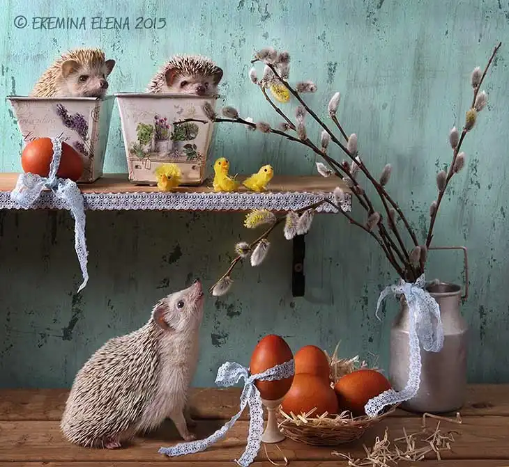 Елена Еремина — фотограф-любитель из Санкт-Петербурга. Ее хозяйственные и необыкновенно милые хомяки и мыши уже завоевали немало поклонников. А теперь у нее новая серия фотографий: про ежей!
