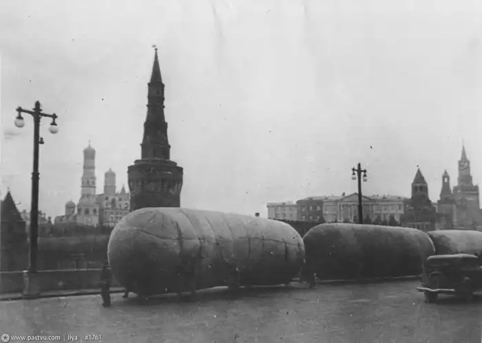 Аэростаты воздушного заграждения над Москвой.