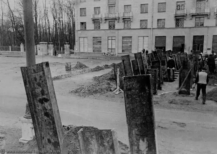 В 41-м году в Москве продолжают сносить Зарядье. Начали снос в 1930-х годах. Закончится это история только к концу 1950-х годов. А в 67-м на месте старых кварталов построят гостиницу «Россия».