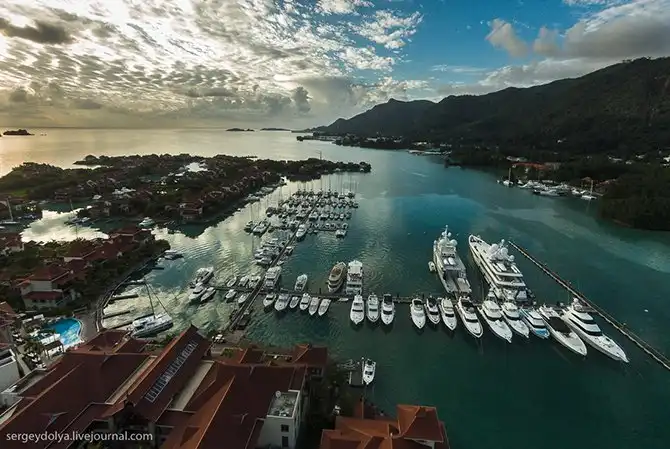 Марина спряталась у берегов Eden Island – искусственного острова – единственного островка цивилизации на главном Сейшельском острове Маэ. С большой землей остров соединен мостом: