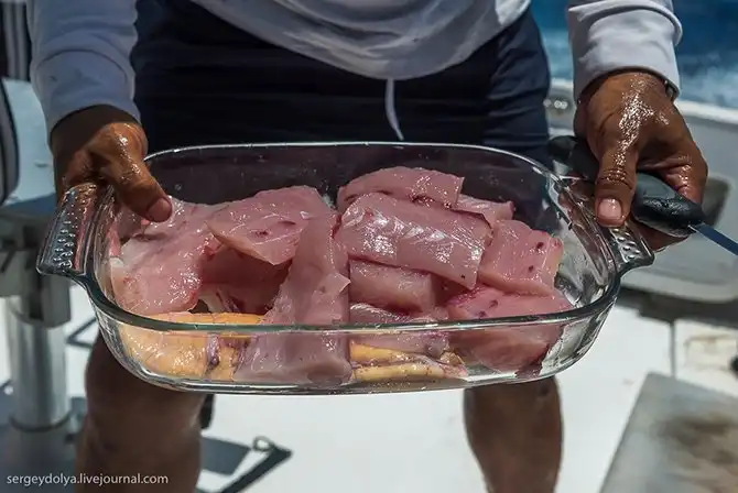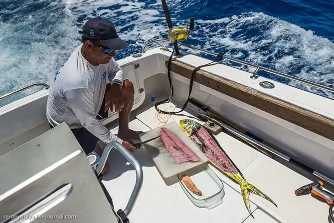 Мы отнесли наш улов в ресторан отеля. Из него приготовили удивительные блюда: сашими, рыба-карри, стейки из махи-махи…