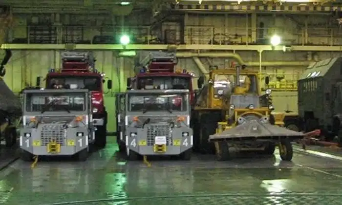 На борту единственного на данный момент российского авианосца «Адмирал Кузнецов» помимо самолетов и вертолетов можно встретить еще и автомобили. Это не простые машины, а специальная техника, позволяющая поддерживать отлаженную схему работы и справляться с нештатными ситуациями.