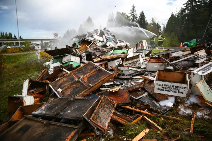 На шоссе под Сиэтлом, штат Вашингтон, в аварию попал грузовик, перевозивший примерно 44 миллиона пчел. Автомобиль перевернулся, и 450 улей были разбиты. Насекомые стали кусать людей, оказавшихся поблизости, а для их усмирения использовали воду с пеной из прибывших на место пожарных машин. Водителям рекомендовали проезжать этот участок с закрытыми окнами, однако, кому-то даже это не помогло избежать болезненных укусов.
