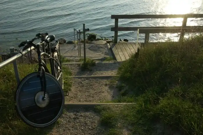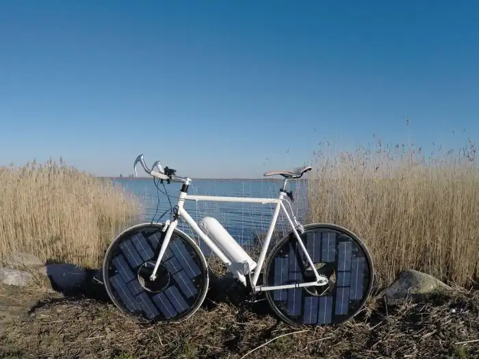 В Дании изобрели велосипед, который может приводиться в движение не только при помощи педального привода, но и благодаря энергии солнца. Разработка под названием Solarbike оснащена солнечными батареями, вмонтированными в колеса, встроенным в раму аккумулятором и электродвигателем. Полностью зараженного аккумулятора хватит примерно на 70-80 километров пути. Максимальная скорость при использовании энергии солнца составляет 25 км/ч, если при этом еще крутить педали, то можно разогнаться свыше 50 км/ч. В далеко не самом солнечном городе Копенгагене за один световой день аккумулятор заряжается на столько, что велосипед может проехать от 2 до 25 км. Дальнейшая судьба проекта не известна.