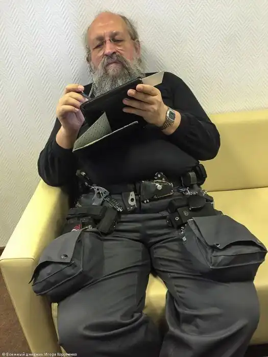 Несмотря на свою эрудированность и начитанность Анатолий Вассерман не похож ни на одного другого интеллектуала. Этот человек отличается особыми взглядами и не стесняется делать громкие заявления, из-за чего число его поклонников и врагов постоянно увеличивается. Понимая это, 62-летний мужчина постоянно готов к худшему развитию событий и носит с собой несколько килограмм железа для самообороны, а также свой знаменитый жилет весом более 7 кг. Недавно в таком видео Анатолий Вассерман пришел на одну радиостанцию, куда его пригласили в эфир одной программы.