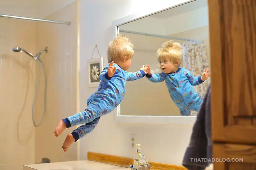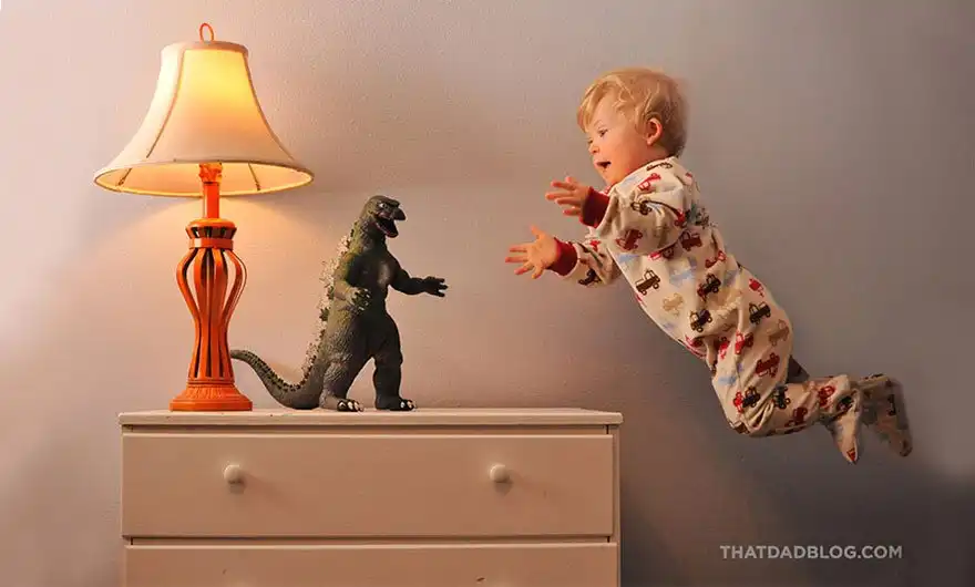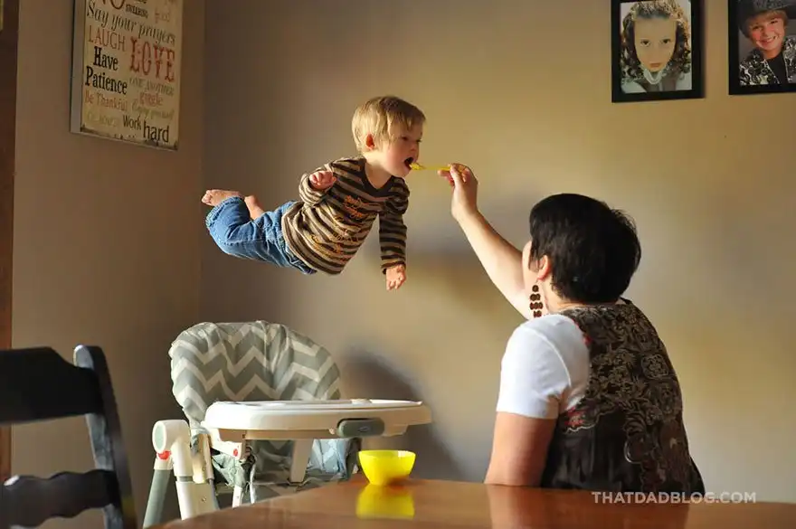 Алан приподнимал сына на руках и фотографировал его в разных ракурсах и местах. И после обработки в Photoshop на снимках получался веселый летающий малыш, исследующий окружающий мир.
