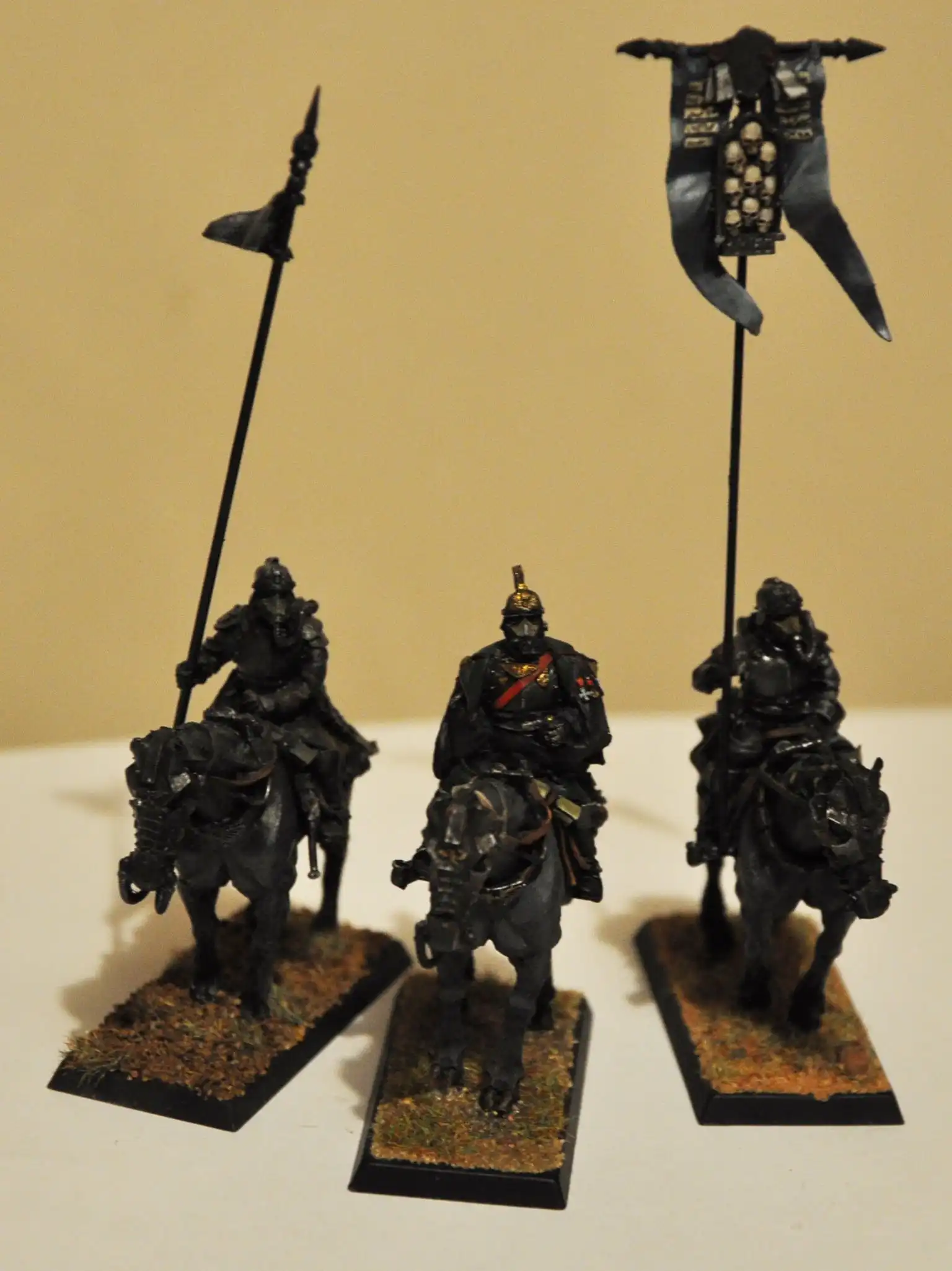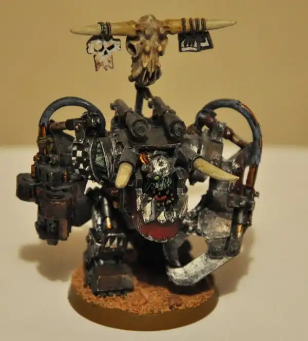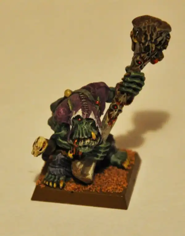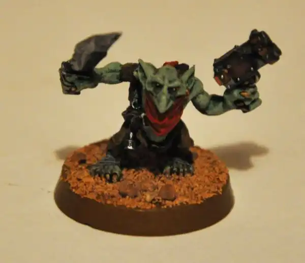 У меня этих ребят тут армия – от мала до велика с техникой… Склеивал из частей, сам дополнял, делал, раскрашивал… Размером с полпальца. Почему гоблины? Я тогда только заинтересовался этим вопросом… Да и схема раскраски показалась мне самой простой…