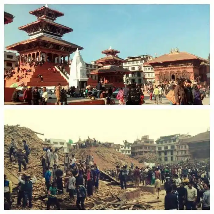 Сильнейшее землетрясение, обрушившееся на Непал, и унесшее жизни более 2000 человек, привело к колоссальным разрушениям. В руины превратились жилые дома, объекты социального назначения и памятники архитектуры, многие из которых входили в список Всемирного наследия ЮНЕСКО. Землетрясение разрушило такие известные достопримечательности, как площадь Дурбар (Дворцовая площадь) в городе Лалитпур (Патан) и башня Дхарахара в Катманду. Страшные последствия землетрясения наглядно продемонстрируют фото, сделанные до и после стихийного бедствия.