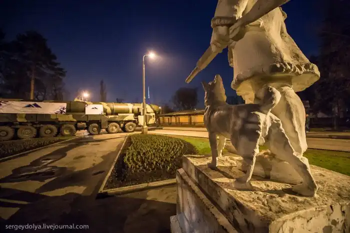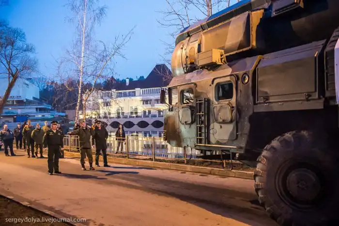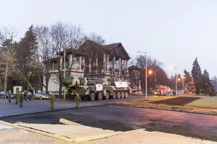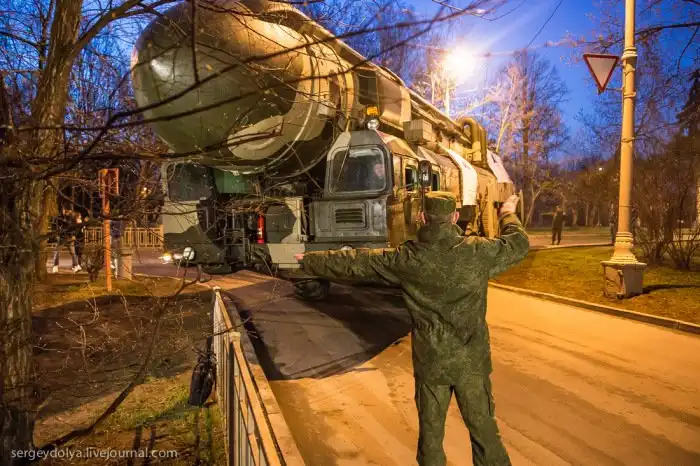 Минувшей ночью на ВДНХ своим ходом прибыл мобильный ракетный комплекс «Тополь», который отныне войдет в состав экспозиции павильона Космос. Подобное решение принято лично Владимиром Путиным. Компанию «Тополю» на площадке составят установка «Бук», зенитные комплексы «Тор», «Оса-АКМ» и «Шилка», истребитель Су-27 и вертолёт Ми-8Т. Узкие аллеи оказались для «Тополя» серьезной задачей, поэтому начали менять маршрут. Столбы и бордюры приходилось аккуратно объезжать. При этом военные были настроены весьма дружелюбно и охотно отвечали на вопросы очевидцев. Как 45-тонная машина в течение 2,5 часов преодолевала 200-метровую дистанцию, смотрите далее.