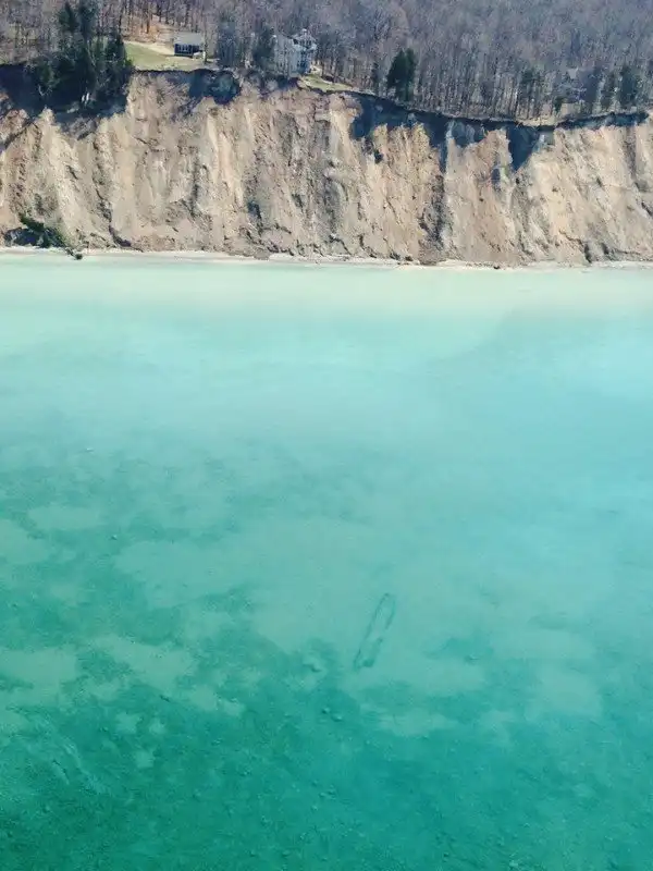 Сотрудники береговой охраны города Траверс-Сити, штат Мичиган, США, опубликовали снимки, которые были сделаны с воздуха над поверхностью озера Мичиган. Весной после схода льда вода становится особенно прозрачной, поэтому без труда можно разглядеть то, что таит дно озера. На сделанных снимках отчетливо видны затонувшие суда и их обломки. На данный момент удалось распознать корабли, затонувшие здесь в 1857 и 1917 годах.