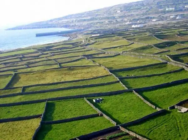 Одно из самых красивых мест с обширной сетью каменных стен — Аран. Это группа из трех островов, расположенных в устье Залива Голуэй на западном побережье Ирландии. Самый большой остров — Инишмор, некогда просто бесплодное скалистое место на краю Атлантики. Его жители на протяжение тысяч лет создали жизнь там, где ранее она была невозможна. Стены здесь также защищают тонкий слой почвы от выдувания ветром, очень часто бушующим в этих краях.