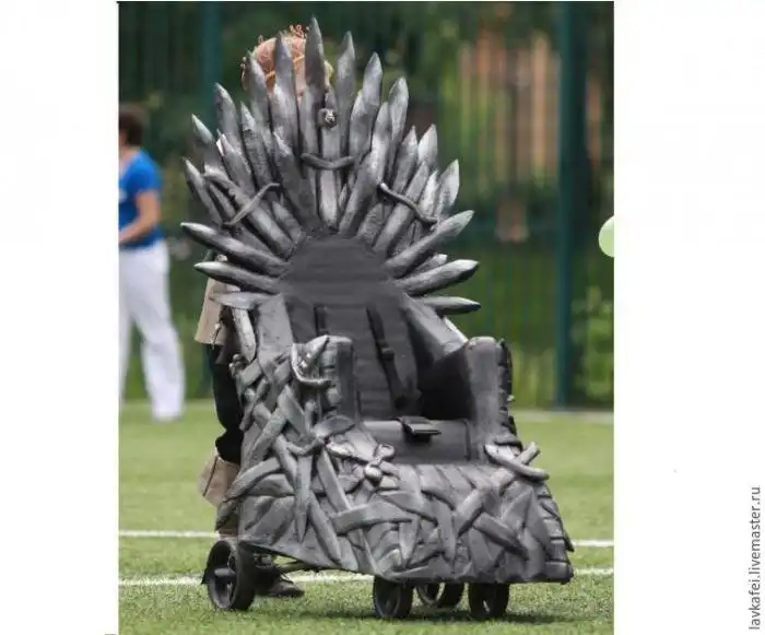 Молодые поклонники книг «Песнь Льда и Огня» и основанного на них сериала «Игра престолов» решили принять участие в параде детских колясок и соорудили совершенно уникальную коляску в форме Железного трона. Для создания своего эксклюзива молодая мама использовала старую коляску, заляпанную клеем и красками с обломанными деталями, а также все то, что осталось в квартире после ремонта.