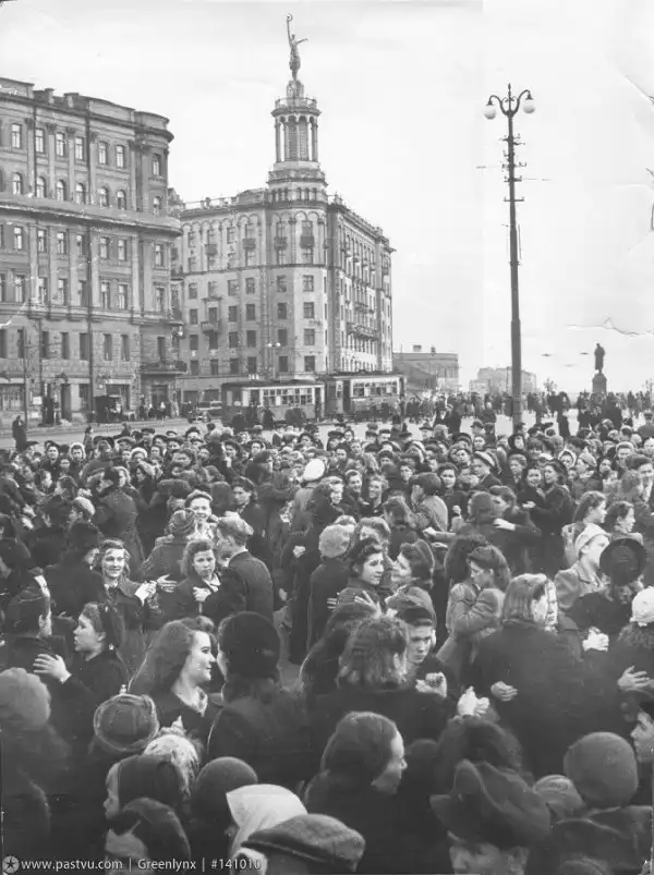 Мирная жизнь возвращалась в столицу в полной мере. С домов исчезла маскировка, открывались ночные рестораны с оркестром, советская власть проводила торжественные мероприятия в честь Крылова и Чехова, на станцию метро "Площадь Революции" вернулись эвакуированные в Среднюю Азию 80 бронзовых скульптур... Только продуктовые карточки ещё не давали забыть о трудностях военного времени. В течение года в Москве открылись Театр киноактёра, Суворовское училище, Музыкально-педагогический институт имени Гнесиных, был создан Институт русского языка АН СССР, началось строительство Кольцевой линии метро.
