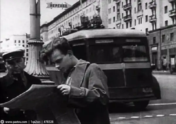 У кинотеатра на Пушкинской площади. Фильм "Иван Никулин – русский матрос" только что вышел на экраны.