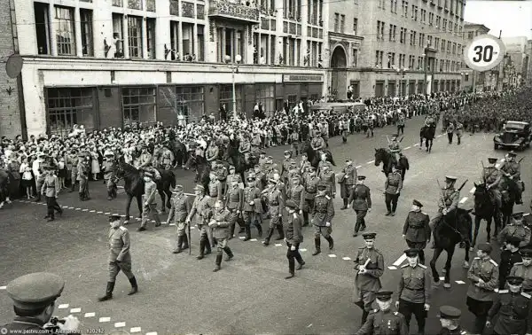 Одним из самых ярких впечатлений для жителей столицы стал марш колонн немецких солдат, взятых в плен в ходе разгрома группы армий "Центр" в Белоруссии.