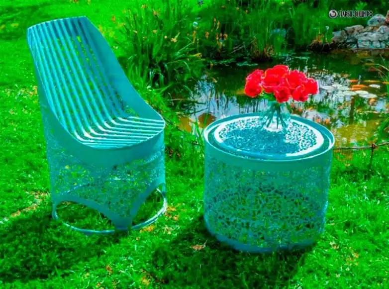 Кружевная мебель и декор из бочек.