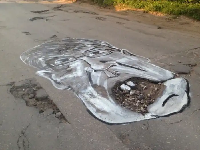 В Рязани в ночь со среды на вторник неизвестные активисты разрисовали дороги города карикатурами на главу городской администрации Олега Белукова. Художники использовали ямы на дороге, как части лица чиновника. Подобным образом жители Рязани намерены привлечь внимание властей к проблемам дорожного покрытия. В то время как многим подобная акция понравилась, правоохранители начали искать лиц, которые оставили изображения на проезжей части. Кроме того полиция решает, какую меру наказания следует применить к активистам.