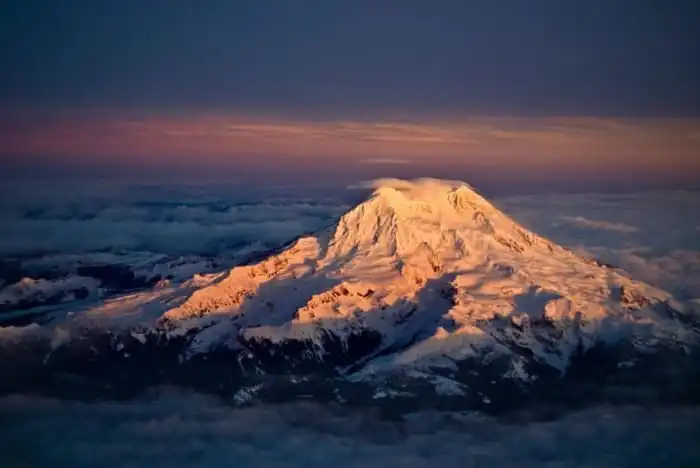 Гора Ренье близ Сиэтла, США, на закате.