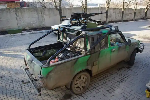 Военный конфликт в бывших украинских Донецкой и Луганской областях не утихает. В условиях выхода из строя или отсутствия настоящих военных БТР, БМП и иных механизированных военных средств транспортировки и поддержки пехоты в полевых условиях, обе стороны конфликта вынуждены бронировать практически весь транспортный парк, имеющийся на передовой. Получившиеся в результате ган-траки, достойно смогли бы сниматься в Безумном Максе и иных постапокалиптических сагах.