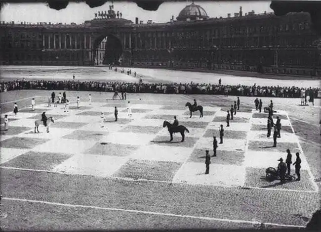 Дуглас Фербенкс держит Чарли Чаплина перед огромной толпой во время рекламной компании облигаций, выпущенных в США во время Первой мировой войны с целью поддержки действий Антанты, 1918