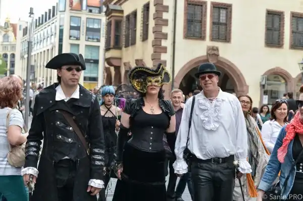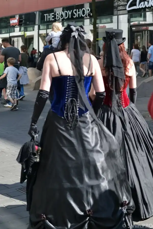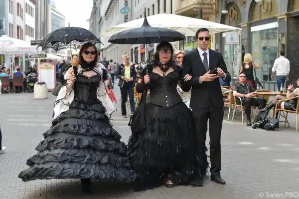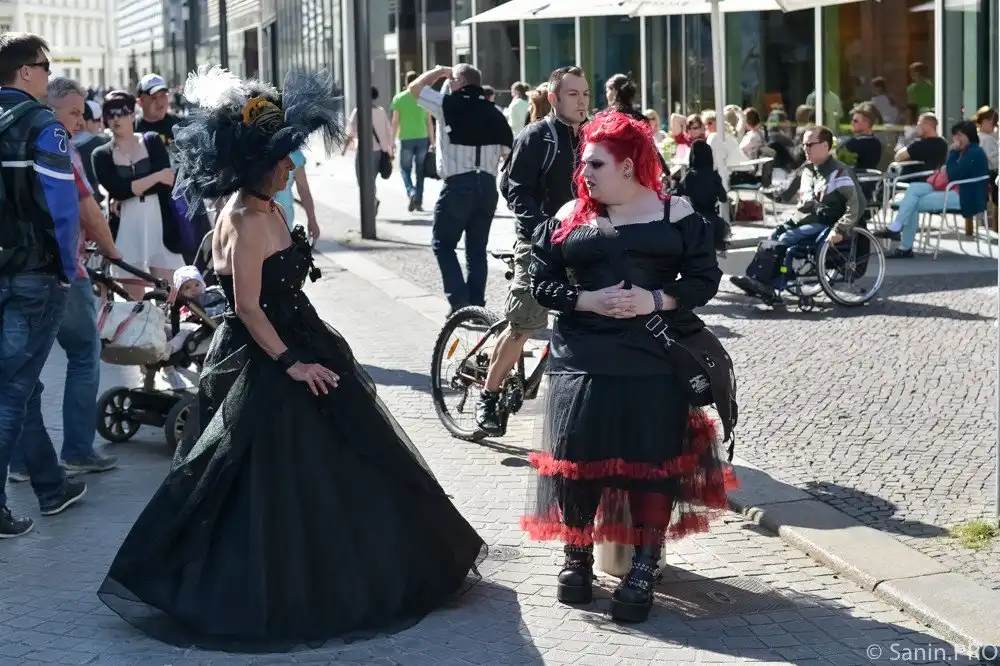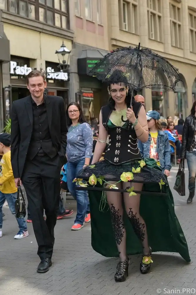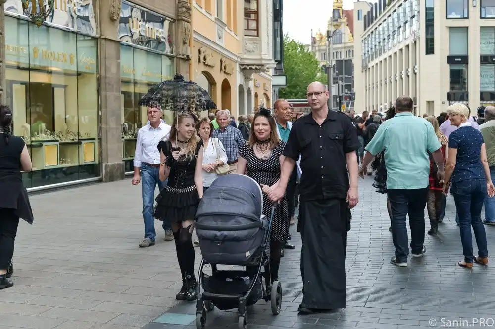 Каждый год на Троицу немецкий Лейпциг собирает сотни людей со всей Европы для проведения фестиваля готики Wave Gotik Treffen. Десятки стилей и направлений объединены воедино и превращают улицы города в настоящий праздник. Толпы людей в костюмах и без приехали чтобы окунуться в эту потрясающую атмосферу карнавала. Несколько фотографий с улиц Лейпцига, сделанных 23.-24. Мая 2015 года: