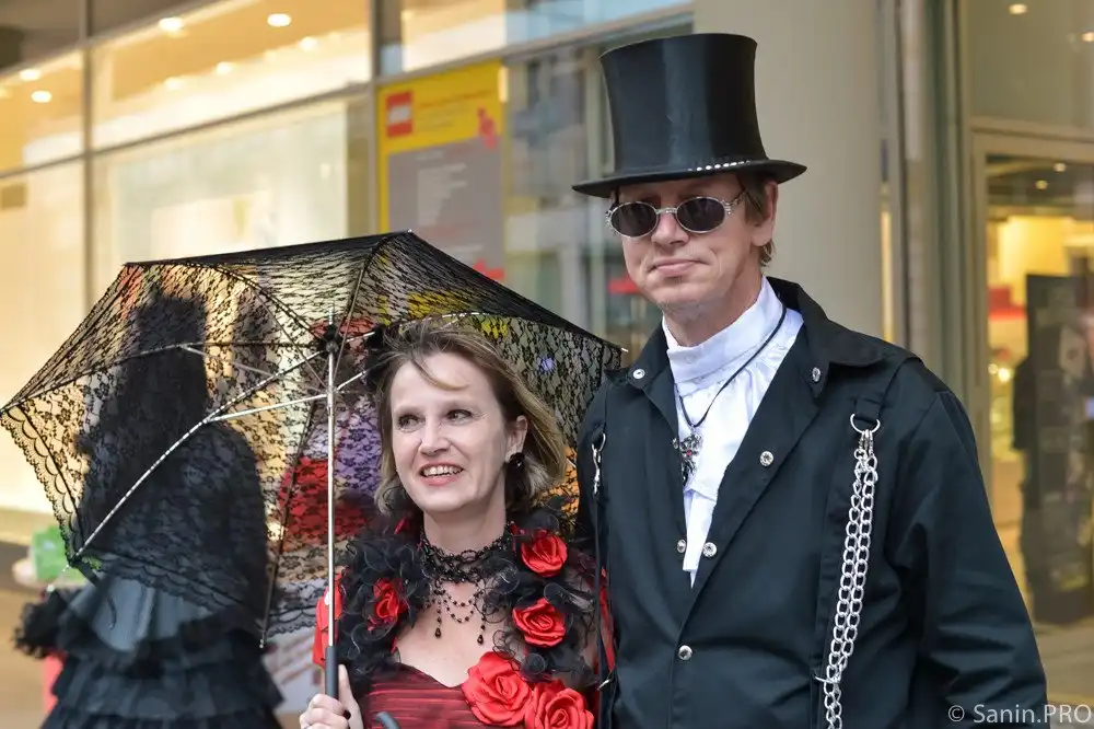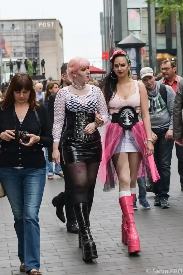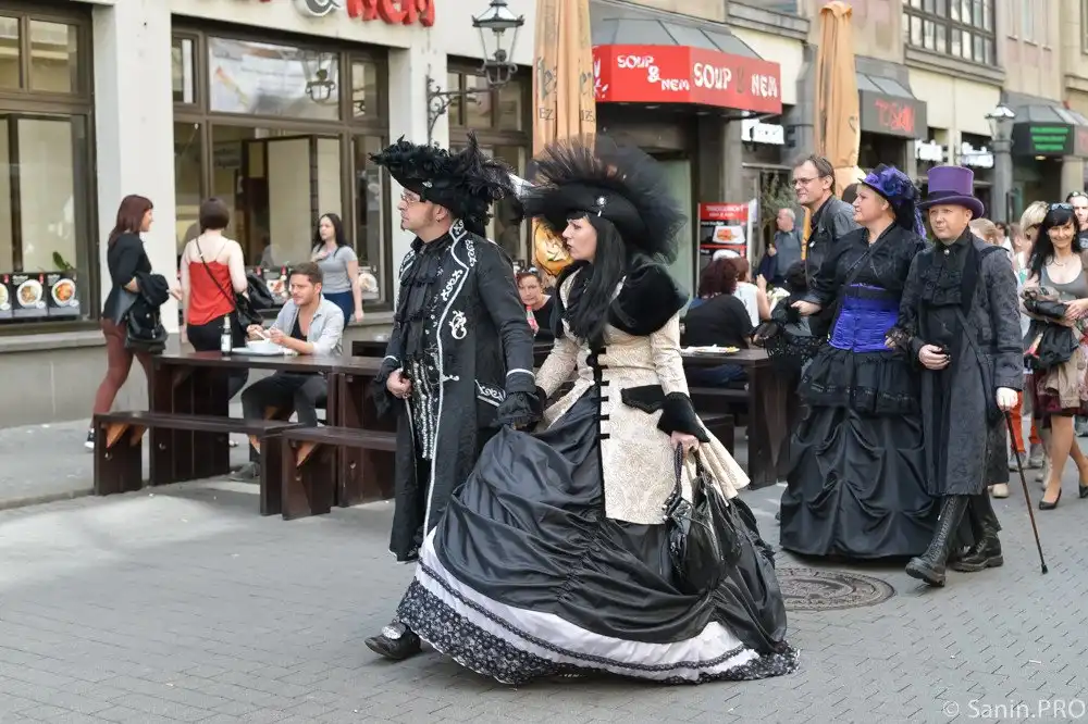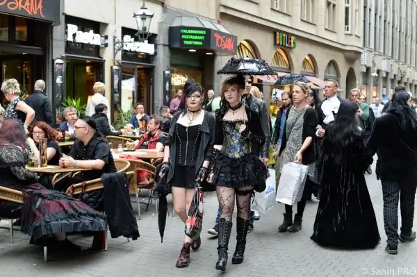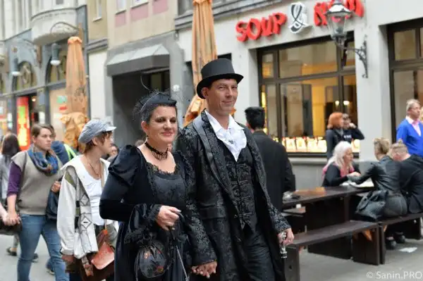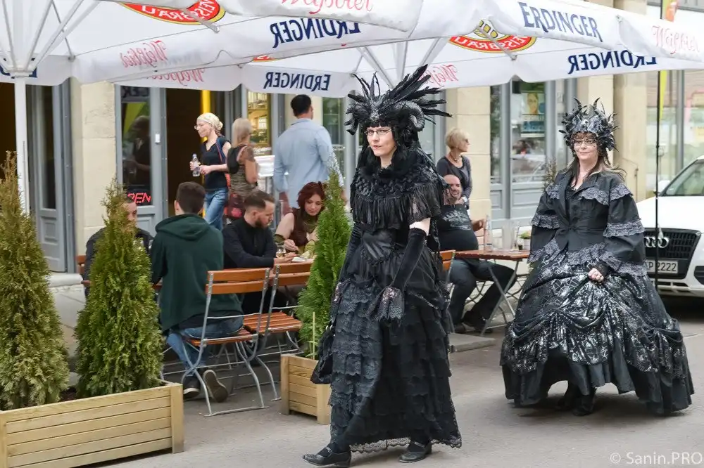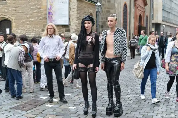 Каждый год на Троицу немецкий Лейпциг собирает сотни людей со всей Европы для проведения фестиваля готики Wave Gotik Treffen. Десятки стилей и направлений объединены воедино и превращают улицы города в настоящий праздник. Толпы людей в костюмах и без приехали чтобы окунуться в эту потрясающую атмосферу карнавала. Несколько фотографий с улиц Лейпцига, сделанных 23.-24. Мая 2015 года: