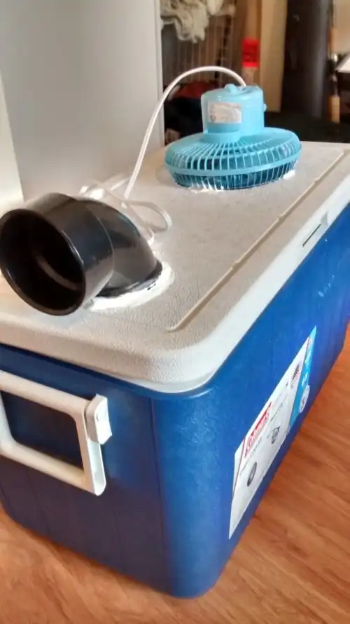 Вот такой портативный кондиционер из пластикового контейнера, вентилятора и бутылок с замерзшей водой изготовил для своей дочери один находчивый отец. Себестоимость подобного самодельного прибора, который будет охлаждать воздух и отправлять его обратно в комнату, довольно низкая, и в особенно жаркий день он может оказаться просто незаменимым.