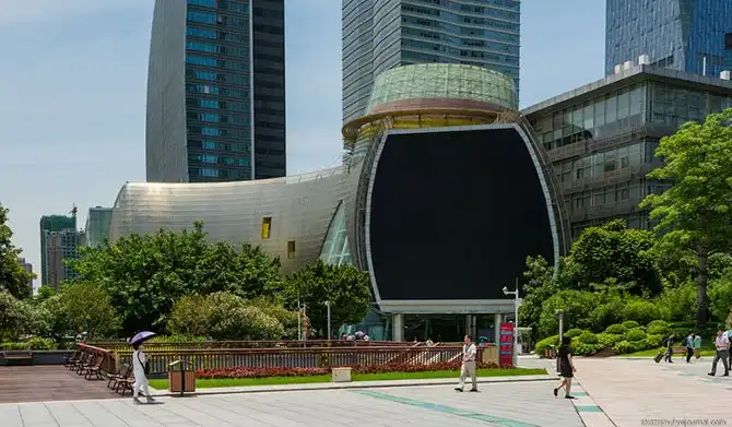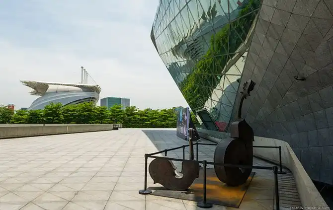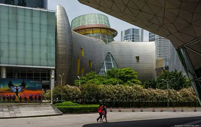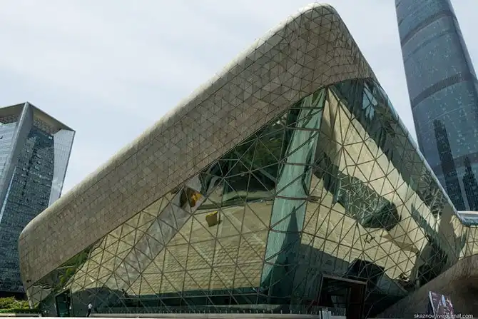 Современные здания – это первое, что бросается в глаза, находясь в центральной части города. Архитектура поражает и удивляет, заставляет о многом задуматься. В Гуанчжоу я жил в очень хорошем отеле расположенном в пяти минутах ходьбы от центральной пешеходной зоны. Вот эти два шикарных здания я и увидел, выйдя на свою первую прогулку.