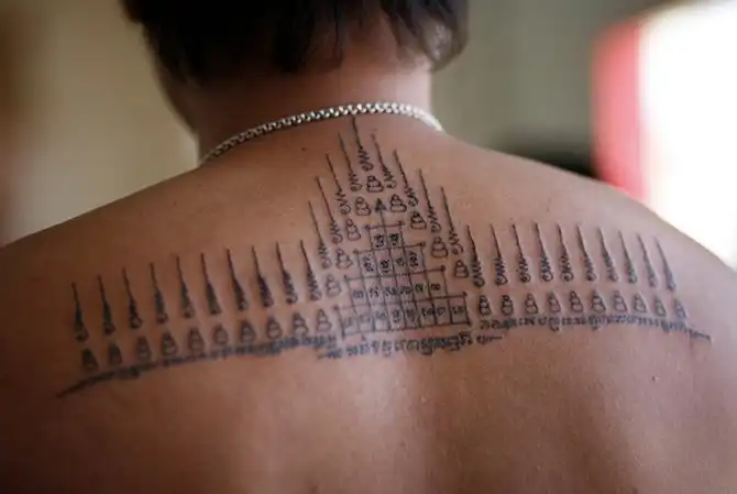 Первые татуировки Сак Янт наносили мастера-брахманы и буддийские монахи искавшим защиты в бою воинам. Узор содержал буддийские молитвы и магические элементы, которые должны были наделить воина здоровьем, удачей, придать ему сил и защитить от зла. Нанесение тату осуществляется посредством длинной бамбуковой палочки — май сак. В качестве чернил используется смесь, состоящая из пальмового масла, змеиного яда и угольных чернил других ингредиентов, точный состав которых знают только монахи. Настоящие татуировки Сак Янт наносят в храмах, один из самых известных из них — Ват Банг Пхра, расположенный в Накхон Чай Си, Таиланд.