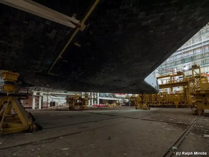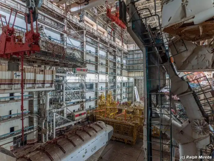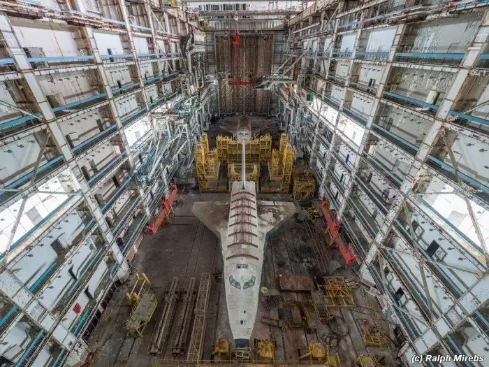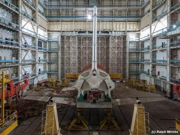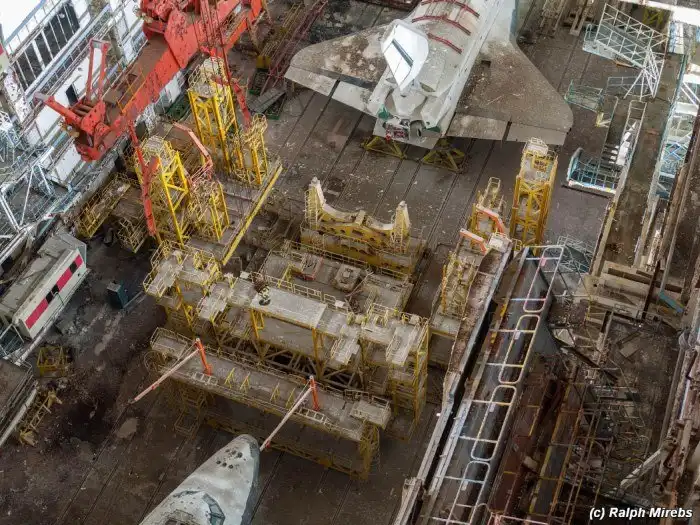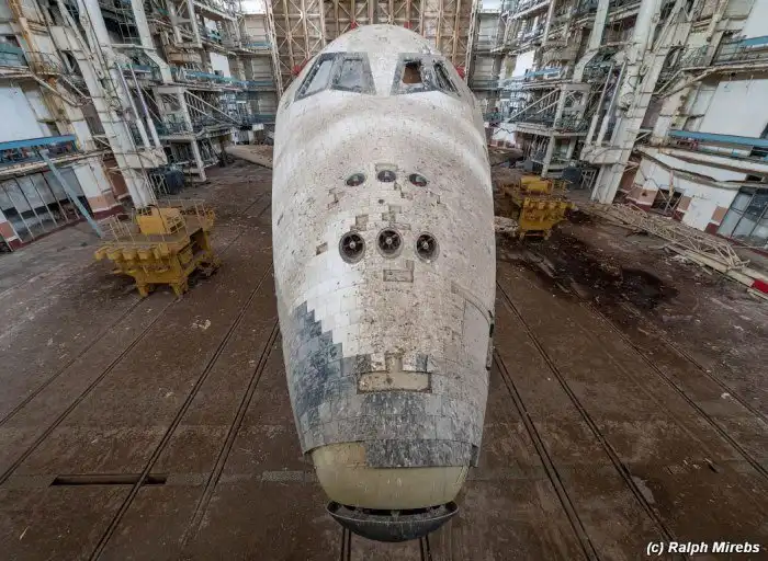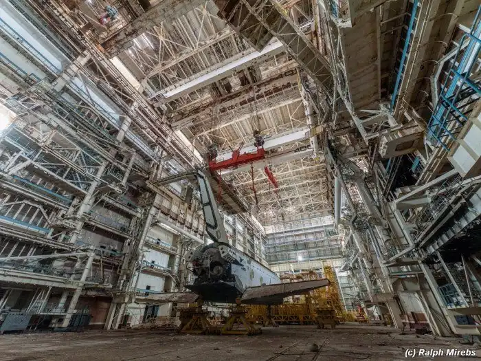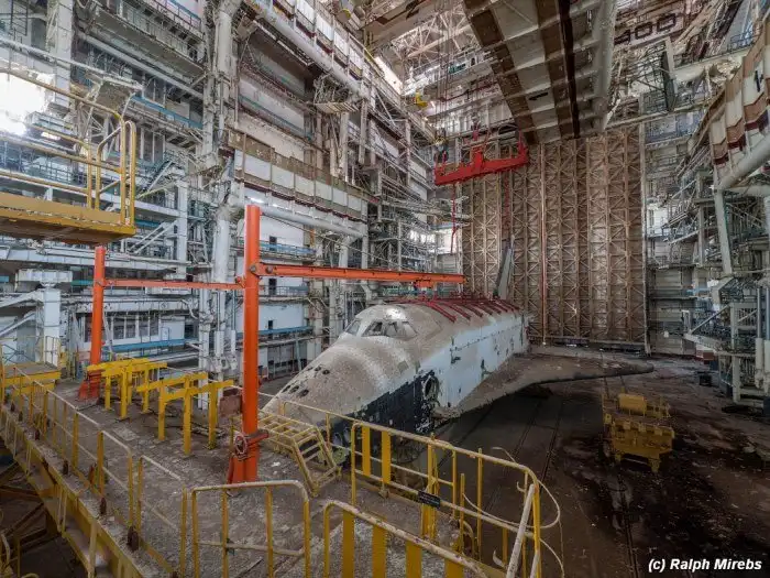 Одному блогеру удалось побывать в заброшенных ангарах космодрома Байконур в Казахстане и взглянуть на советские космические шаттлы программы «Буран-Энергия». Финансирование многообещающего проекта прекратилось в начале 90-х годов, с тех пор летный образец шаттла, почти полностью готового к полетам, и его макет для испытаний стоят под крышей монтажно-заправочного комплекса на стартовой площадке Байконура. Состояние некоторых отсеков и частей шаттла довольно плачевное, хотя другие его части сохранились более хорошо. О том, как сейчас выглядит космический корабль, без лишних слов расскажут фото, сделанные блогером.