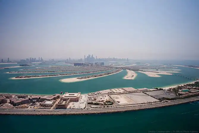 Из «города» через всю пальму проходит ветка монорельса. Чтобы намыть такой огромный остров, днем и ночью более 40000 чернорабочих старались изо всех сил. Часть трудяг жила на пришвартованном на расстоянии от берега судне.Остальных привозили с берега по специально построенной железнодорожной ветке.