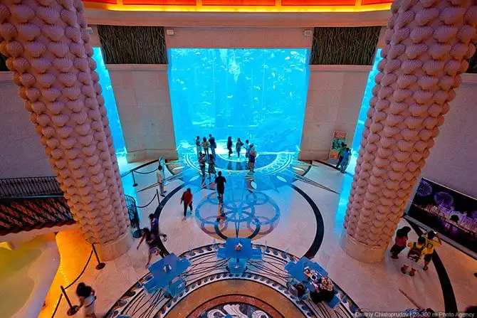 Если вы не хотите снимать в этом отеле номера, но желаете посмотреть на аквариум, то можно отправиться в прогулку по главному холлу отеля.