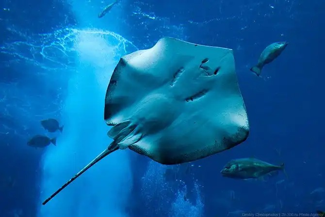 Аквариум называется «Затерянный мир». В нем находится около 65 000 морских обитателей в том числе акулы и скаты.