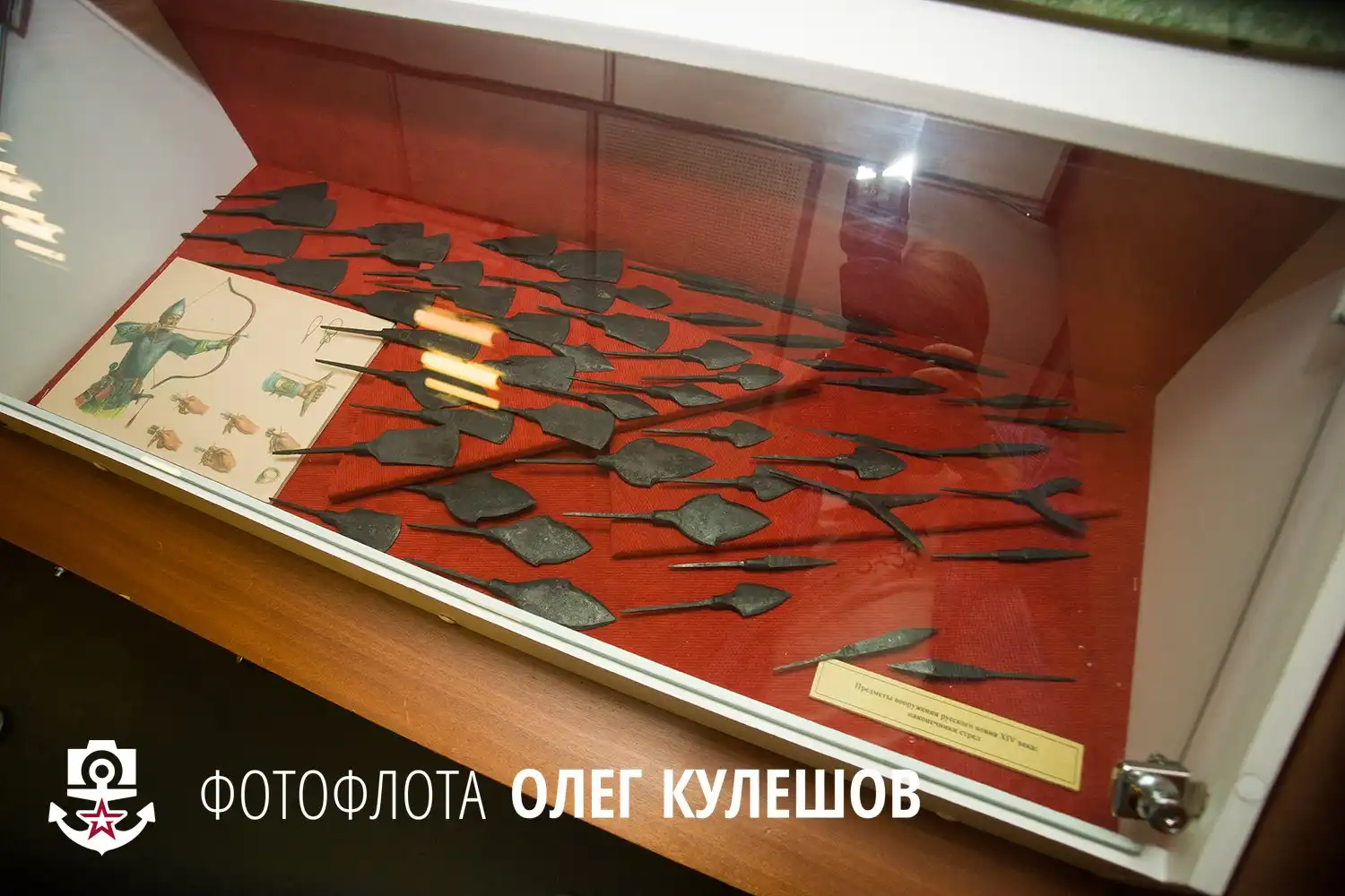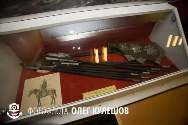 Предметы вооружения русского война XIV века:Колчан со стрелами.