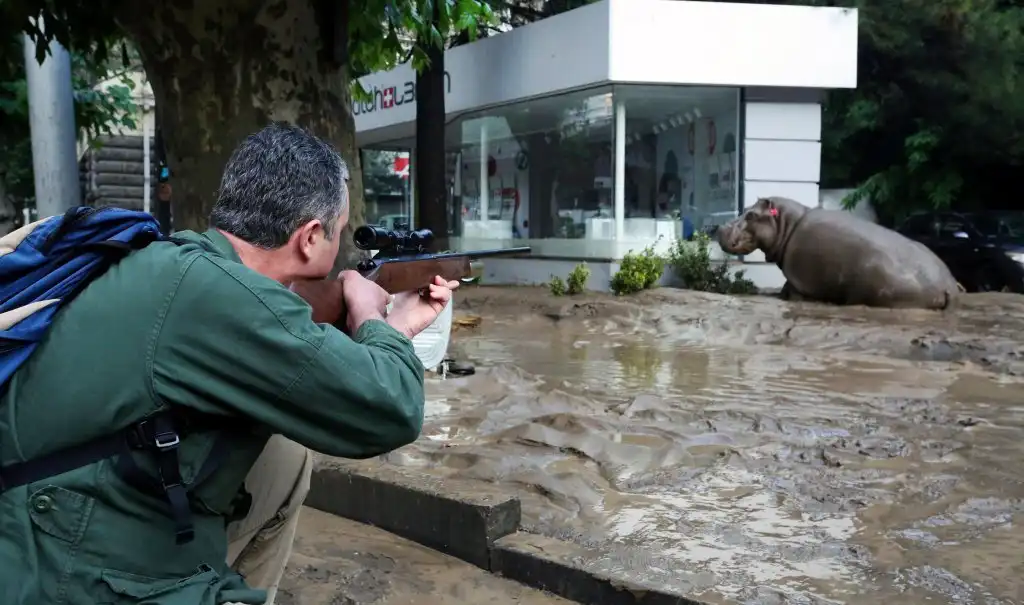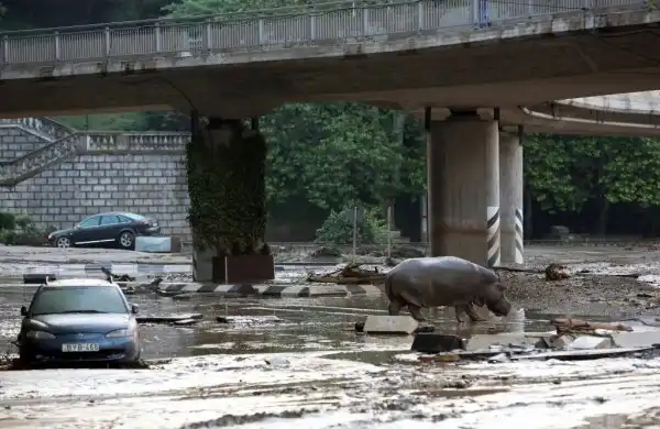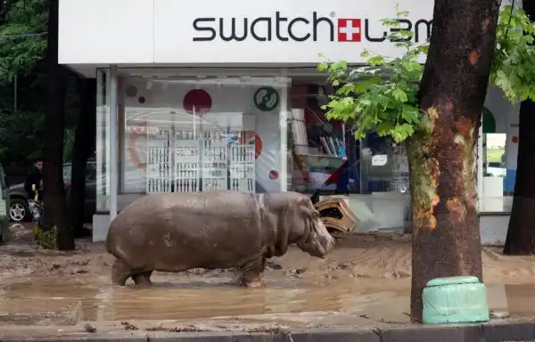 Из зоопарка в Тбилиси сбежали крокодилы, львы, тигры, медведи, волки и бегемоты, которые теперь разгуливают по улицам города. Виновником сего происшествия стал проливной дождь, обрушившийся на столицу Грузии в ночь с субботы на воскресенье. К сожалению, есть смертельные жертвы наводнения среди людей, по меньшей мере 12 человек погибли, в том числе трое работников зоопарка. По сообщениям местных СМИ, 10 человек пропали без вести. Сбежавших животных пытаются отловить, однако пока не всех удалось поймать.