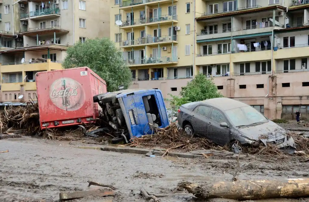 Переполненная река затопила здания и автомобили — сообщает грузинский портал Civil.ge. Вода нанесла большой ущерб городу: сильно повреждены дороги и инфраструктура. Десятки семей остались без крова, их дома были смыты водой.