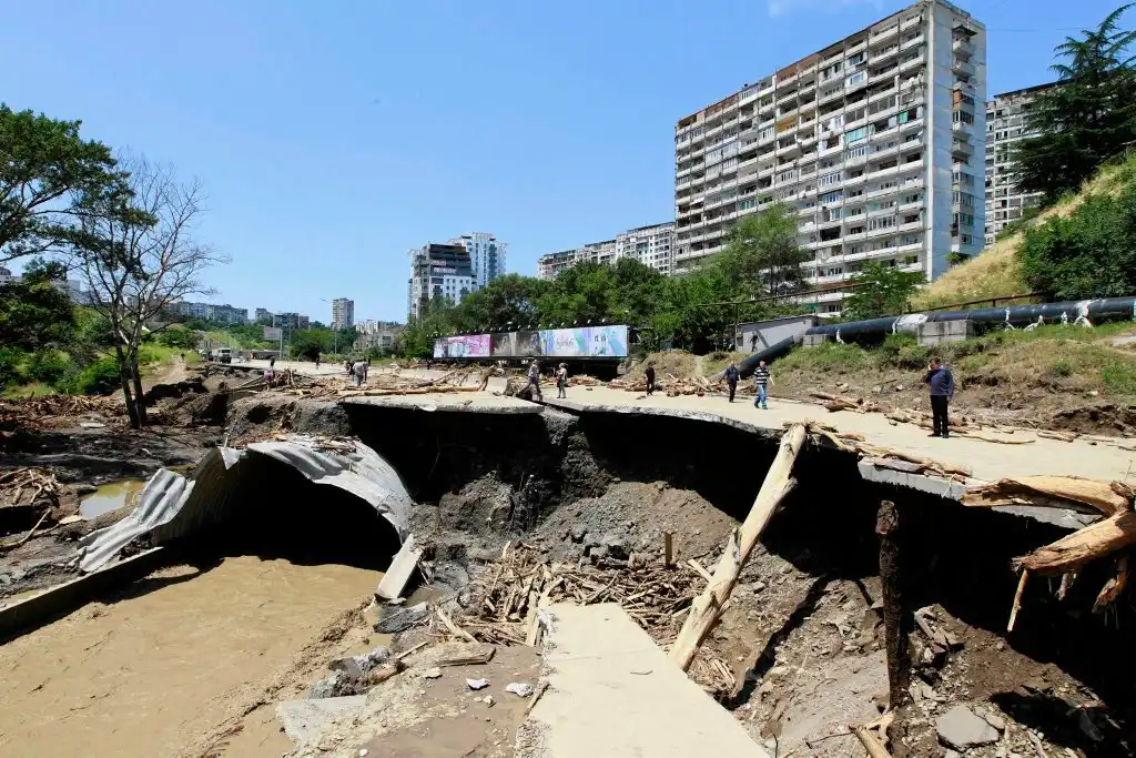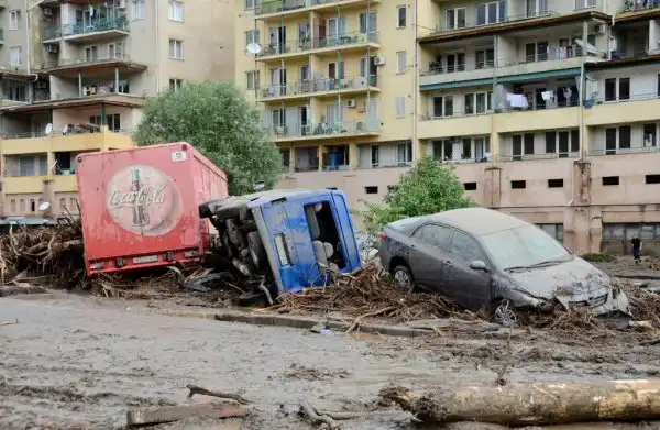 Небольшая река Вере в результате сильных дождей вышла из берегов. В районе Цкнети — поселения в Тбилиси — имели место большие оползни.