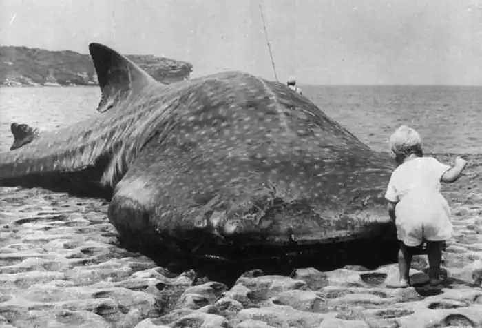 Ребёнок и китовая акула, 1965 год, берег Ботанического залива