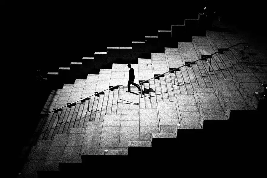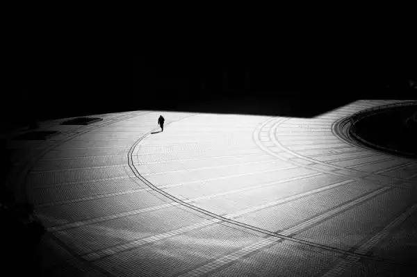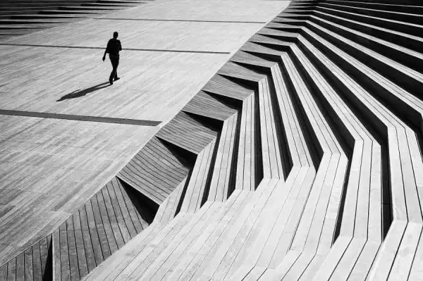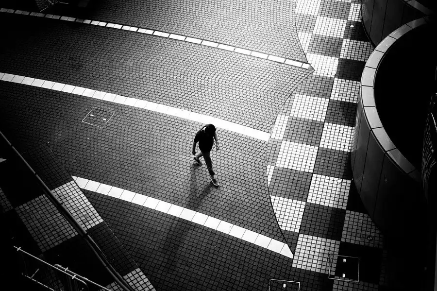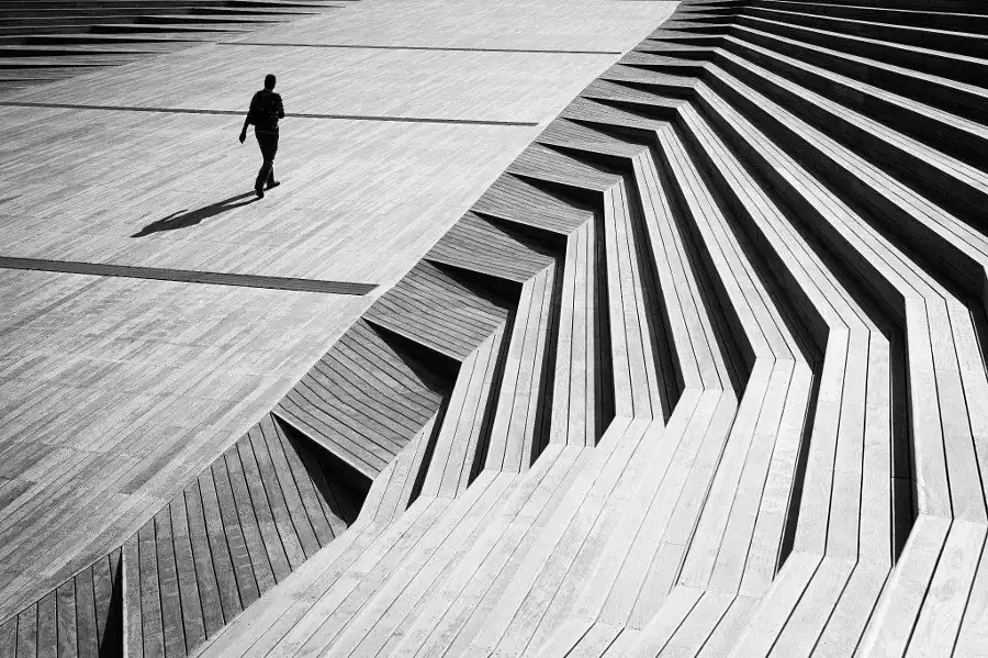 Каждое изображение фотограф Джуничи Хакояма умело захватывает своей дальномерной фотокамерой Leica M Monochrom, помещая в какой-то части кадра одинокую фигуру. Композиционный стиль особенно впечатлит любителей геометрии.