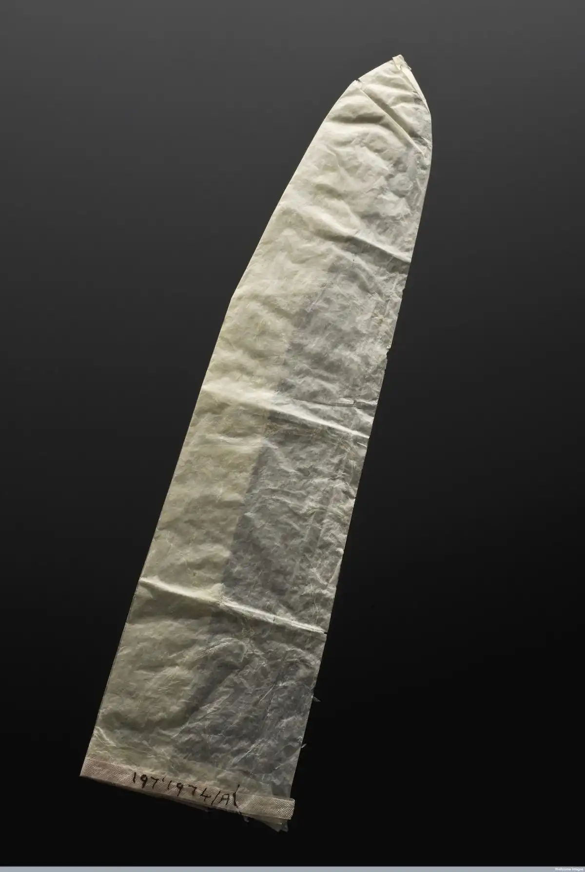 Этот презерватив изготовлен из слепой кишки животного. Образец, что на фотографии сделал химик Джон Белл и Croyden Limited. 1910-е гг. Фото: Музей науки, Лондон