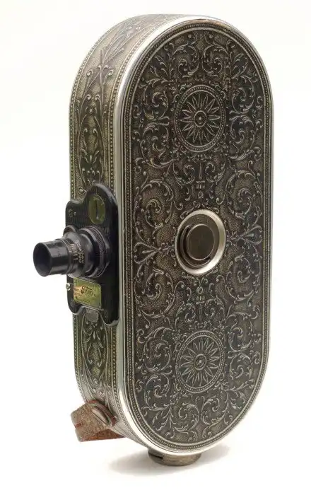 Потрясающе красивая 16-миллиметровая камера Filmo 75 была выпущена в Чикаго в 1928 компанией Bell & Howell. Такие камеры использовали голливудские студии для съемок своих первых кинофильмов. Настоящее произведение искусства.