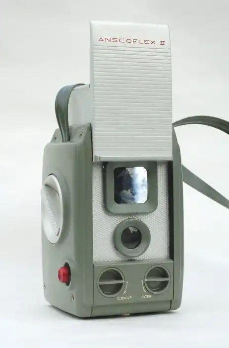 Те, кто интересуется классическими камерами, наверняка знает этот экземпляр. Anscoflex II, дизайн которого был придуман Раймондом Лоуи, сделан из металла. На фотоаппарате есть защитная передняя панель, под которой скрывается видоискатель.