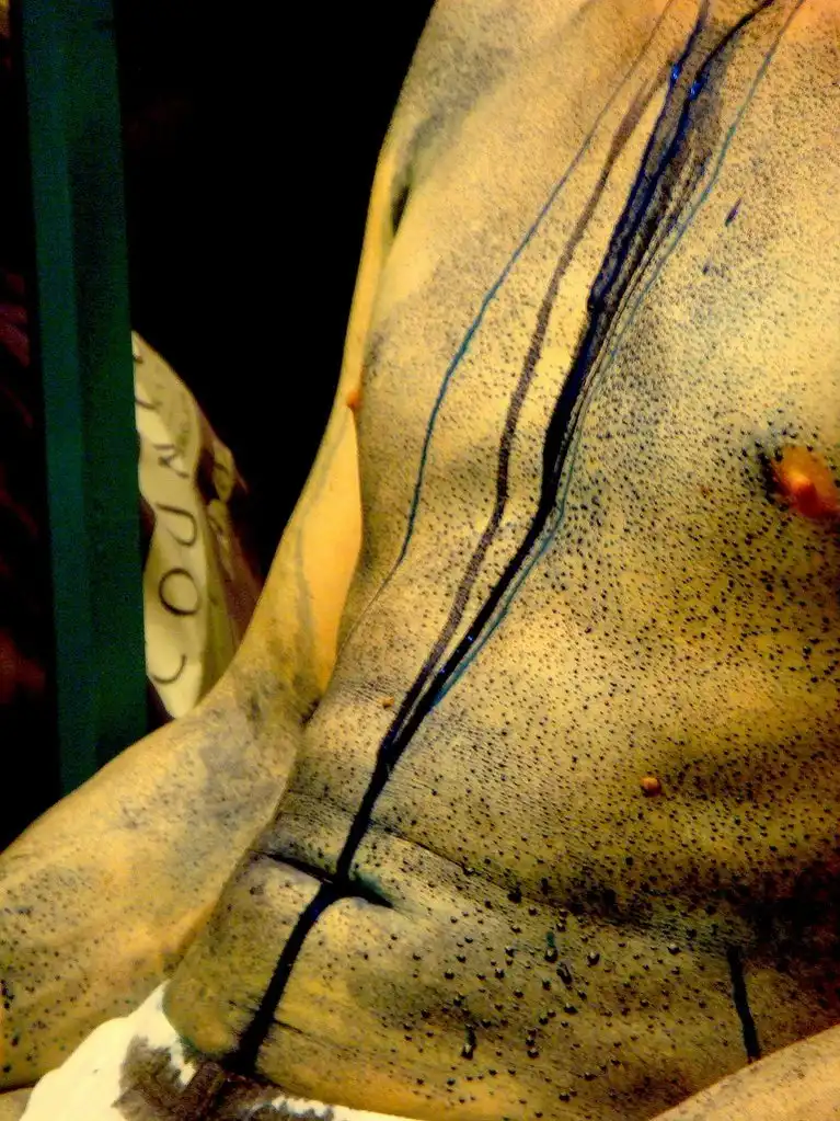 Художник объелся красителей и покрылся синим потом. Художник Янн Маруссич устроил необычный перформанс – он съел огромное количество синего красителя, который окрасил все секреции его тела в синий цвет