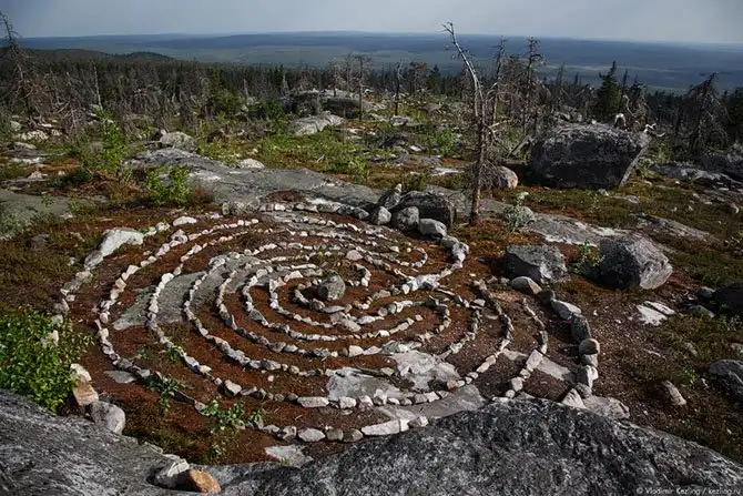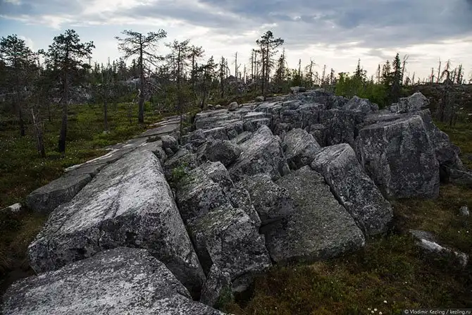 Да, действительно, расположение камней — очень необычно. Особенно удивляют периодически встречающиеся группы валунов, сложенные змейкой. Всё это очень непохоже на творение природы.