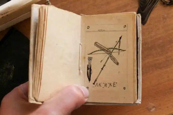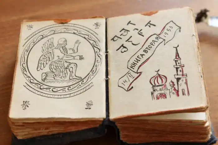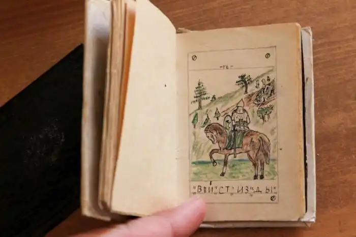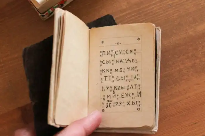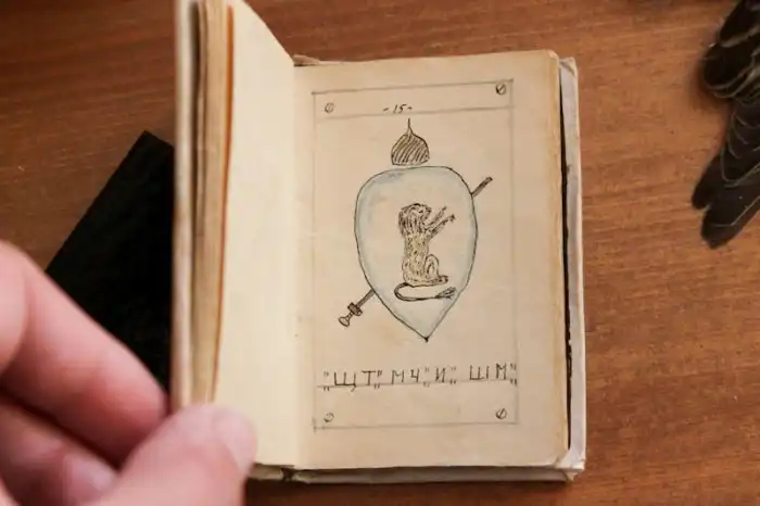 А эту книжечку с тайным шрифтом, папа писал в 10-11 лет.