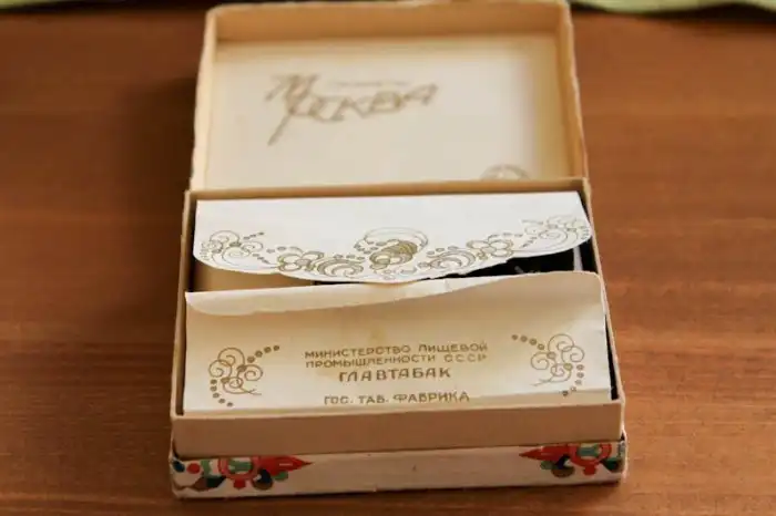 Конечно, не обошлось и без сигаретной коробки. Какие же красивые упаковки были тогда