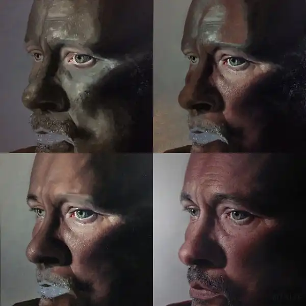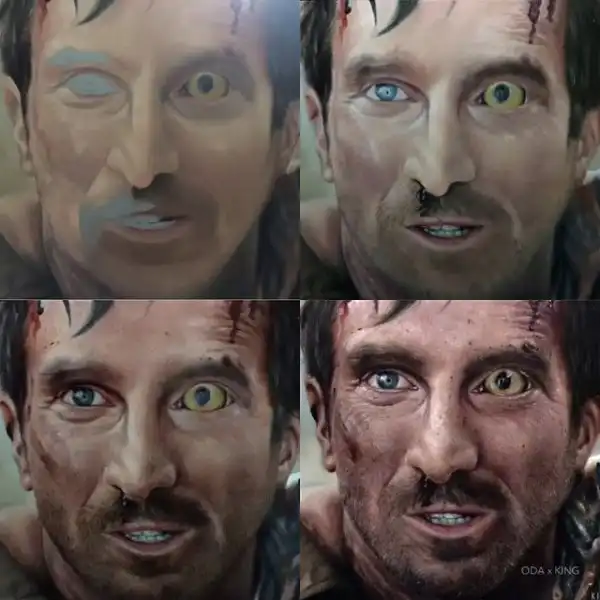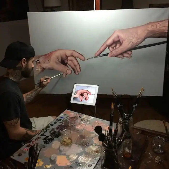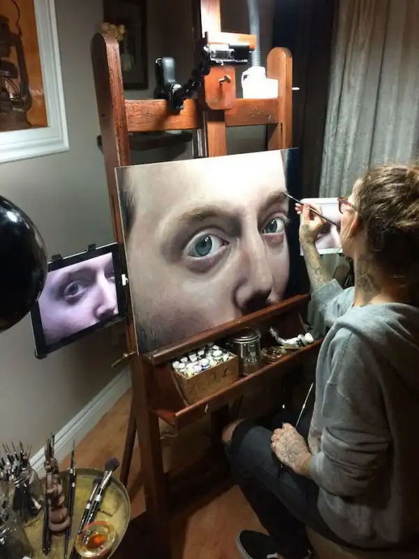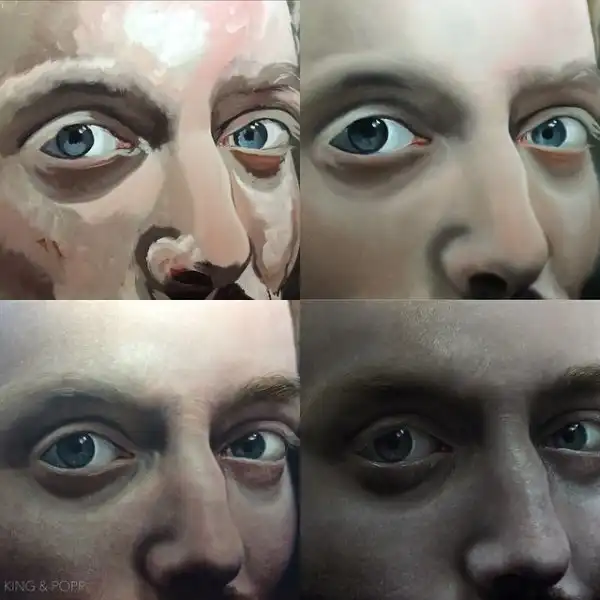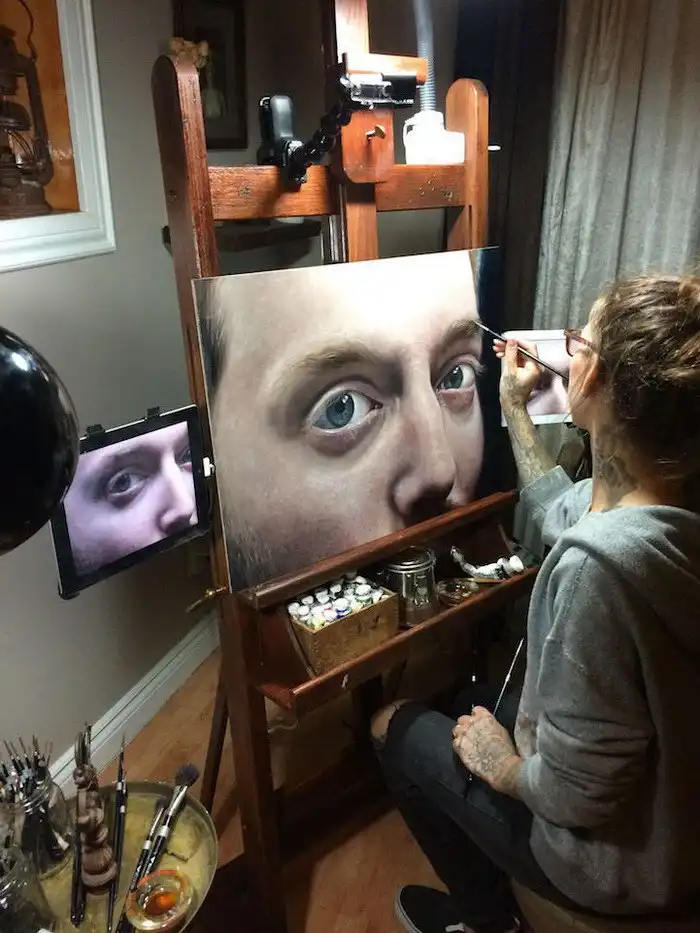 Художники Кит Кинг и Кори Ода Поп создают невероятные портреты людей на больших холстах. На работах художников прорисован каждый волосок, каждая вена на коже — создается ощущение фотографии, а не картины.