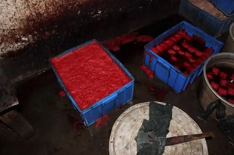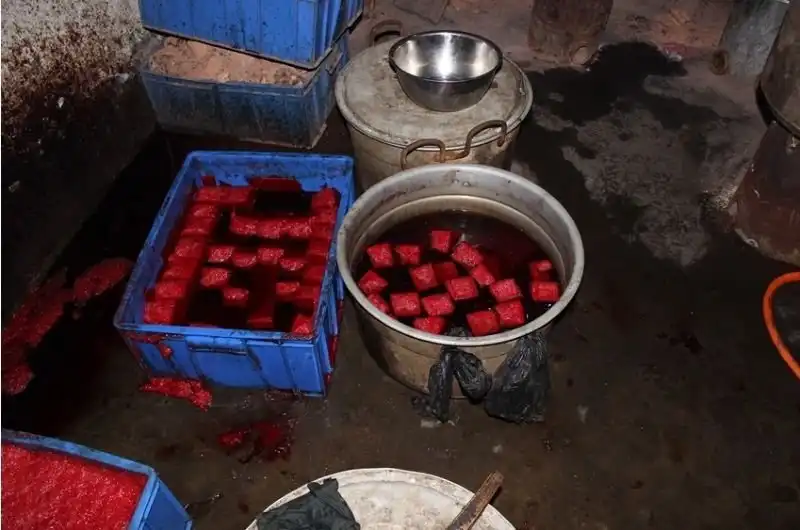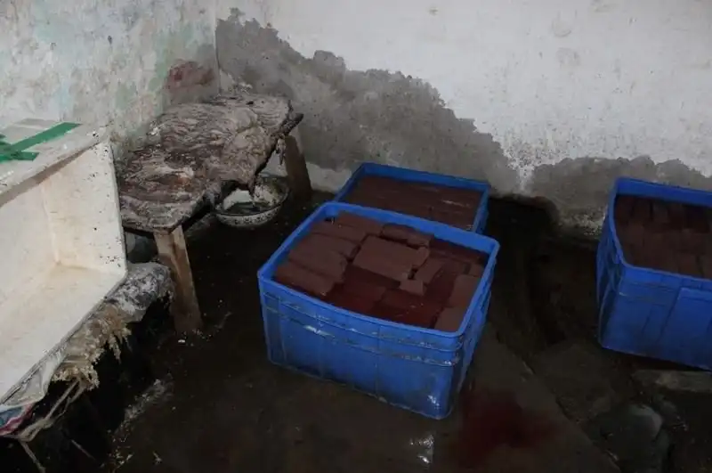 В Китае застывшая утиная кровь считается деликатесом, уж не знаю почему. А где есть спрос, найдется и предложение. Полиция города Анкан, провинция Шэньси, накрыла подпольный цех по производству токсической еды из фальшивой утиной крови, сделанной из овечьей и коровьей крови, замоченной в формальдегиде.